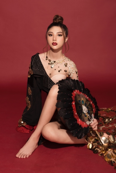 Phụ kiện kèm theo trang phục được lấy cảm hứng từ triều Nguyễn. Đặc biệt là chiếc nón được lấy ý tưởng từ nón chóp của vua Khải Định. Tuy nhiên, form dáng của chiếc nón đã được điều chỉnh lại để phù hợp với thời đại hiện giờ.