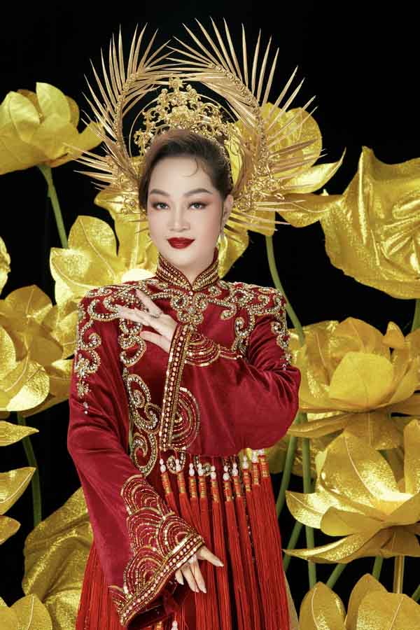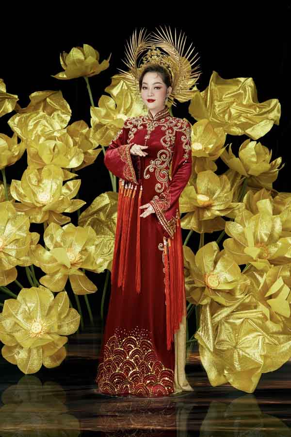 Hoàng hậu Dương Vân Nga không chỉ có sắc đẹp làm say lòng các đấng quân vương, mà bản lĩnh chính trị, thời cuộc của bà cũng hiếm thấy, nếu xét theo thân phận của người đàn bà dưới thời phong kiến xa xưa. Và phản ánh nỗi oan ức tâm tư nỗi niềm của người phụ nữ Việt Nam từ ngàn xưa và nay bộ trang phục được lấy từ cảm hứng là tên của một vị hoàng hậu lịch sử Việt Nam oai nghi mẫu mực tông chủ đạo màu đỏ quyền lực được đính kết hoa văn họa tiết tỷ mỉ cách điệu.