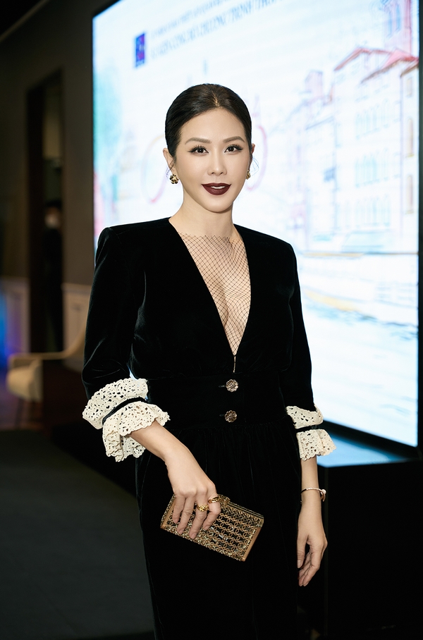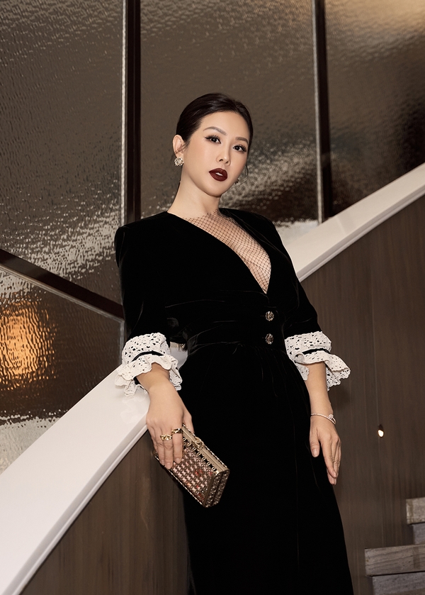 Hoa hậu Thu Hoài sang trọng, quý phái trong bộ cánh đen quyến rũ.