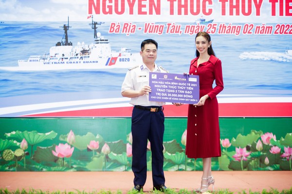 Nàng hậu bày tỏ: “Với những phần quà thiết thực, Tiên muốn dành lời tri ân đến các anh. Hy vọng phần nào cải thiện đời sống vật chất lẫn tinh thần, giúp cho các anh có thêm động lực trong công cuộc bảo vệ chủ quyền và trật tự an ninh trên các vùng biển đảo của Tổ quốc.”