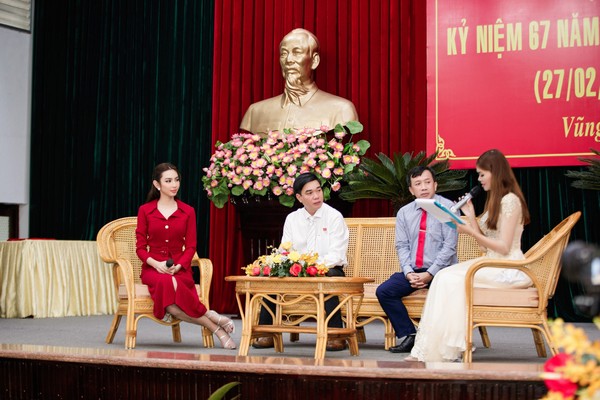 Di chuyển đến Thành ủy Thành phố Vũng Tàu, Hoa hậu Thùy Tiên vinh dự được tham gia vào buổi Họp mặt Kỷ niệm ngày Thầy thuốc Việt Nam. Tại đây, nàng hậu sinh năm 1998 đã có dịp ngồi lại cùng bác sĩ Bùi Xuân Thi – Giám đốc Bệnh viện Vũng Tàu, bác sĩ Nguyễn Thanh Phước – Giám đốc Trung tâm Y tế Thành phố Vũng Tàu và chia sẻ sự cống hiến của các y bác sĩ trong công tác phòng chống dịch suốt thời gian vừa qua.