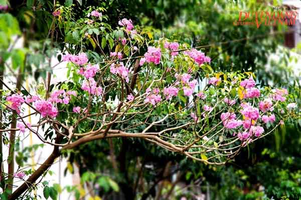 Trong rộn ràng của nắng mai, lướt qua con đường quen, tôi bắt gặp những cây xanh lặng lẽ che mát cho bao người bỗng bừng lên sắc hoa. Những chùm hoa như chiếc kèn nhỏ sắc hồng cứ nở, làm đẹp cả một con đường.