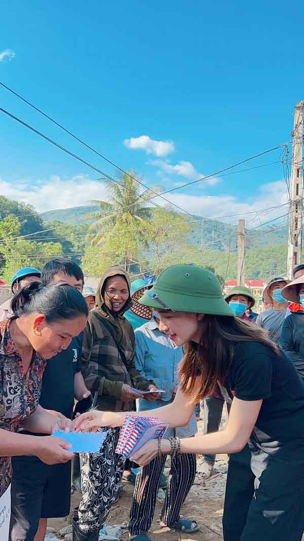 Trước đó, khi nghe tin bão Noru đổ bộ vào miền Trung, nữ ca sĩ bất ngờ quyết định trích 300 triệu “tiền túi” để quyên góp vào quỹ Mặt trận Tổ quốc Việt Nam. Không những vậy, sau đó không lâu, Hòa Minzy còn tích cực đến địa phương, trao quà cho 230 hộ dân chịu thiệt hại của bão.