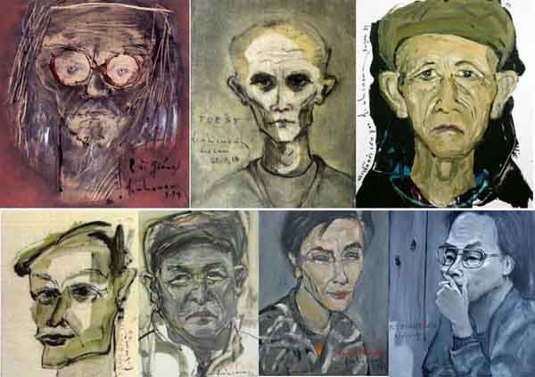Ký họa các thi sĩ của họa sĩ Đinh Cường: bao giờ cũng nghệ thuật, tài hoa, thần thái, độc đáo. Một vài chân dung từ trái sang phải: Bùi Giáng, Tuệ Sỹ, Nguyễn Đức Sơn, Nguyễn Đình Toàn, Võ Phiến, Thanh Tâm Tuyền, Doãn Quốc Sỹ… (Ảnh: Tư liệu)