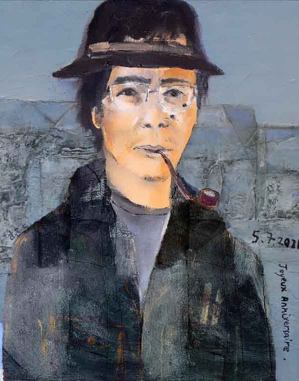 Chân dung – Vẽ nhân sinh nhật họa sĩ Đinh Cường, 5.7.2021 – Sơn dầu – Tranh của họa sĩ Đinh Trường Chinh, con trai ông.