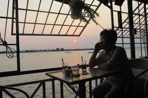 Từ quán cà phê nhìn ra thoáng bóng cây cầu Ghềnh thấp thoáng xa xa…