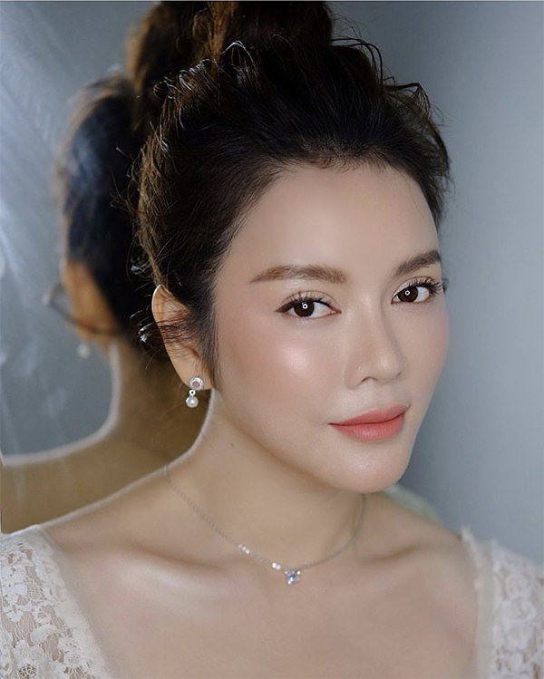 Khi trang điểm theo lối đánh nền trong veo, môi cam trẻ trung, Lý Nhã Lỳ chọn thêm hoa tai ngọc trai cỡ nhỏ để tăng vẻ điệu đà.