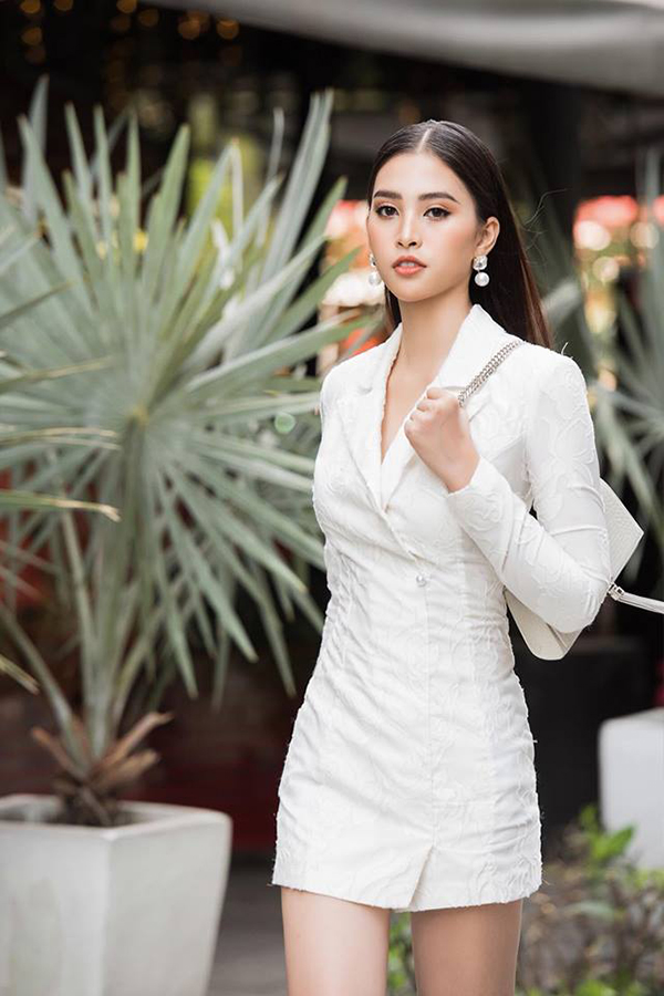 Hoa tai ngọc trai là sản phẩm được nhiều người Việt lăng xê ở mùa này. Đỗ Mỹ Linh chọn khá nhiều kiểu phụ kiện sang trọng để giúp hình ảnh của mình thêm cuốn hút.