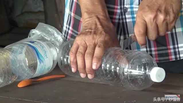 Dùng dao cắt chai nhựa ở khoảng 1/3 chai.