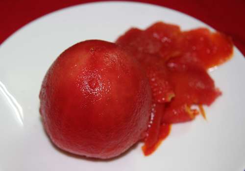 – Chần sơ cà chua qua nước sôi, lột bỏ lớp vỏ mỏng bên ngoài.