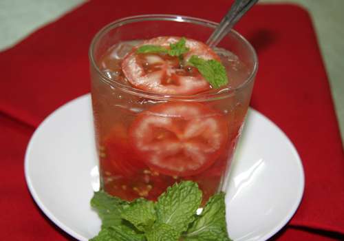Món ăn vừa ngon vừa bổ dưỡng và phù hợp với tiết trời oi nóng của ngày hè sắp tới. Bạn chỉ cần chuẩn bị một quả cà chua chín, ít đường cát trắng cùng những viên đá lạnh đơn giản.