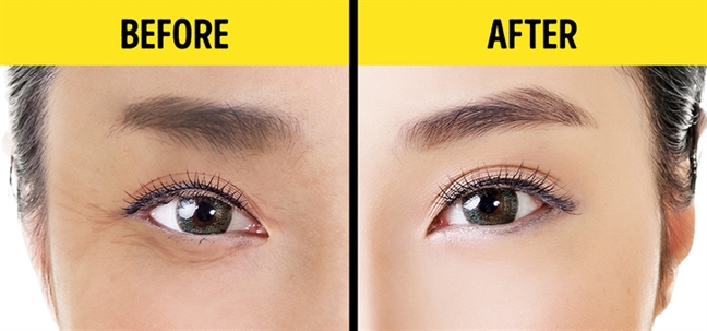 Đặt ngón tay trỏ vào phần đuôi mắt, xoa làm nóng một chút, ấn và thả ra. Bạn có thể kéo về phía thái dương một chút. Hãy lưu ý rằng các cơ đang được kéo chứ khong phải phần da.