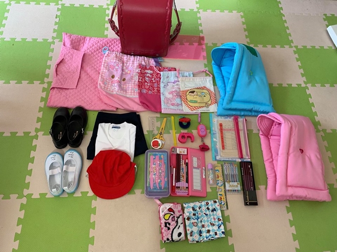 Đồ dùng cần sắm cho mỗi học sinh vào lớp một như bé Gấu gồm: balo chống gù; hai đôi giày màu xanh và đen, đôi đen đi hôm khai giảng, đi học còn đôi xanh đi trong lớp; bộ đồ thể thao với quần xanh tím than, áo phông trắng; mũ màu đỏ; hai mũ đội khi động đất; còi báo động; hộp bút có đủ bút chì, bút đỏ, tẩy và keo dán; túi đựng thìa, dĩa ăn cơm; các loại khăn lau; hộp đất sét… Mỗi món đồ, từ vật nhỏ nhất, đều phải ghi tên. Vở và sách giáo khoa để ở trường còn khăn ăn, khăn lau tay sáng mang đi, tối mang về để thay đổi.
