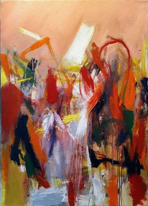 “Lửa thiêng” – Acrylic / 80cmx1m2 / 2021 – Họa sĩ Trần Hải Minh