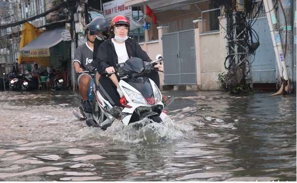 Trước đó ngày 29-9, triều cường tại TP.HCM đạt 1,66m tại trạm Phú An và 1,65m tại Nhà Bè, vượt báo động 3 (1,5m) khiến nhiều tuyến đường gần sông rạch bị ngập nặng, người dân di chuyển khó khăn.