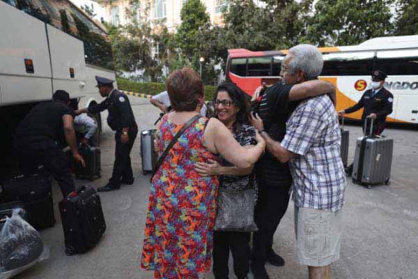 Hành khách MS Westerdam vẫy tay chào những người còn lại được rời khỏi du thuyền. Sau khi về nước, hành khách trên du thuyền sẽ được chính quyền địa phương theo dõi sức khỏe.