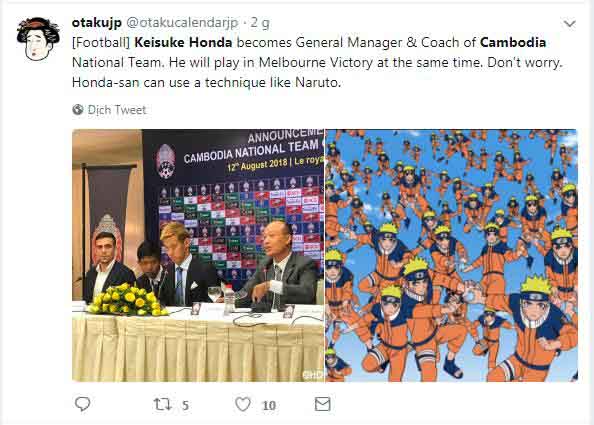 Thông tin này đã được công bố trong buổi họp báo được tổ chức vào hôm qua bởi LĐBĐ Campuchia (FFC). Đây là thông tin gây ngạc nhiên, do ngày 6/8 Honda đã đầu quân cho CLB Melbourne Victory, thuộc giải A-League của Australia.
