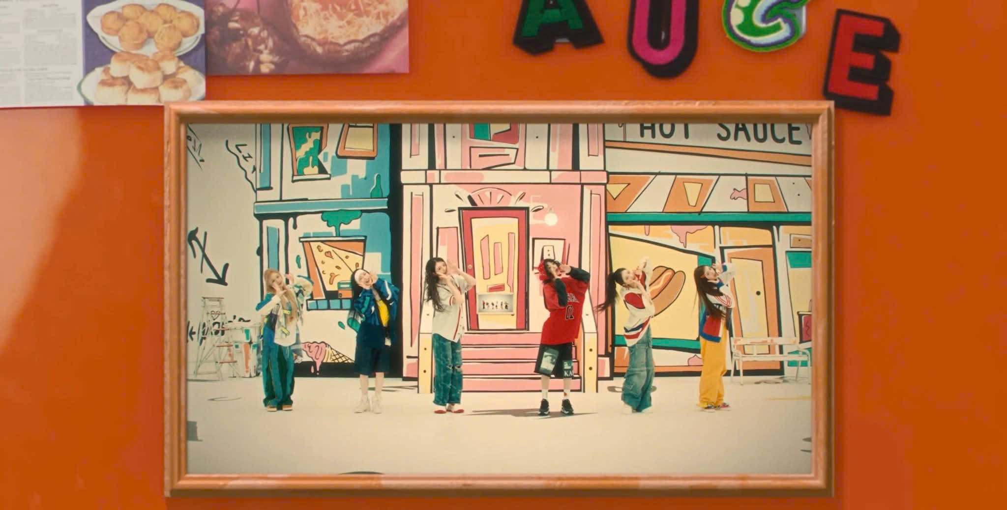 Không thể không nhắc đến phần hình ảnh trong MV – nơi mà “Hot Sauce” trở thành món ăn trọn vẹn cho cả thính giác lẫn thị giác. Căn bếp âm nhạc này được bày biện bằng bảng màu nóng rực rỡ: đỏ, cam, vàng – vừa gợi nhớ đến ớt, sốt, nắng hè, vừa phản chiếu tính cách bốc lửa và năng động của một thế hệ thần tượng mới.