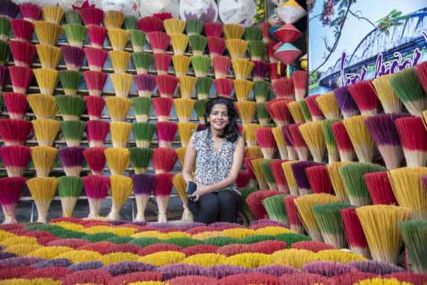 Nữ du khách Ấn Độ check – in tại làng hương Thủy Xuân