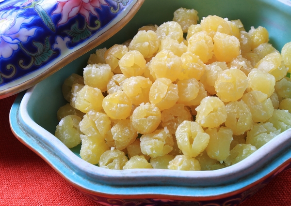 Mứt bát bửu là loại mứt quý phái, được kết hợp từ 8 loại nguyên liệu bao gồm kim quất, cam sành, bí đao, hạt sen, gừng sợi, hạnh nhân, phật thủ cùng thịt heo quay. Tất cả đều là những nguyên liệu bồi bổ sức khỏe, chống cảm và giàu dinh dưỡng.