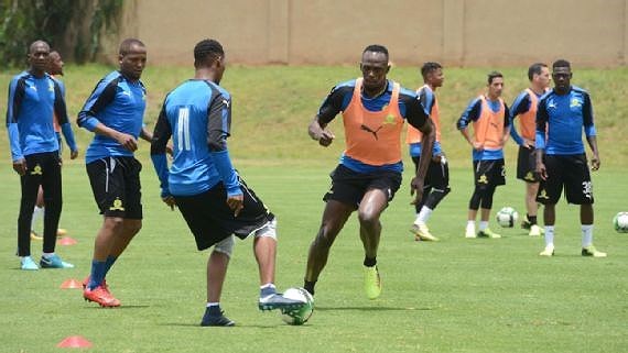 Bolt (giữa) tập luyện để chuẩn bị cho trận ra mắt Dortmund.