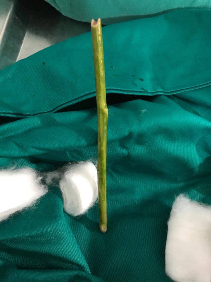 Dị vật hình que được lấy ra khỏi tử cung của bệnh nhân