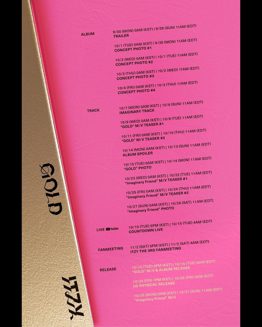 Lịch trình phát hành cho ablum “GOLD”