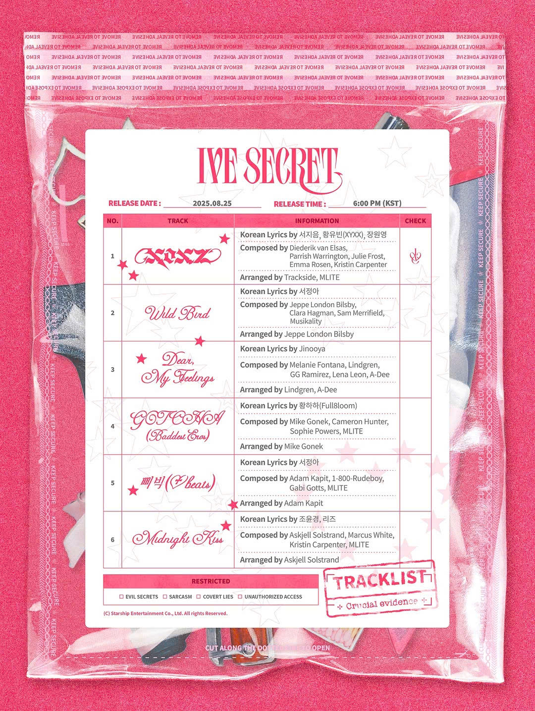 EP "IVE SECRET" gồm 6 bài hát, trong đó "XOXZ" là ca khúc chủ đề - Nguồn: @ivestarship