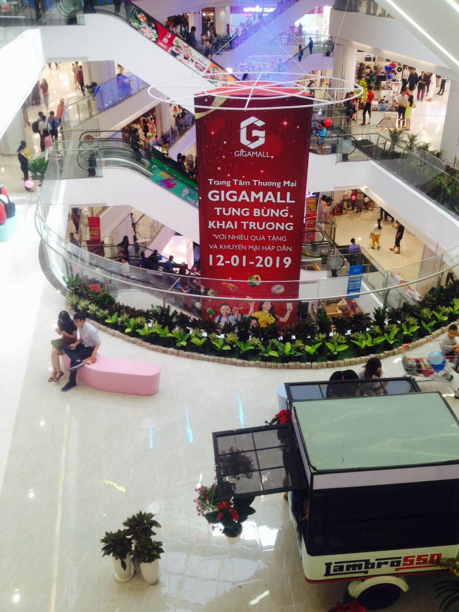 Khách phải cuốc bộ trên thang cuốn tham quan mua sắm tại Trung tâm thương mại Gigamall Thủ Đức