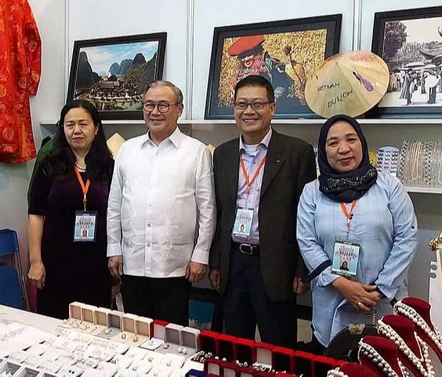 Ngoại trưởng Teodoro Locsin thăm gian hàng Việt Nam.