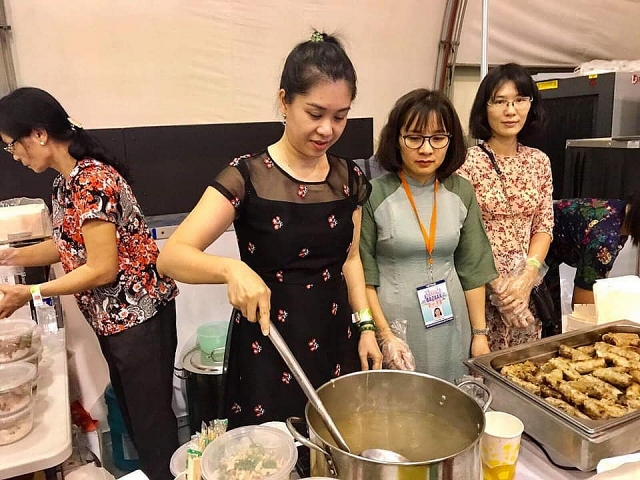 Món nem và phở của Đại sứ quán trở thành ưa thích với người dân mỗi khi có hội chợ. Quầy hàng ẩm thực của Việt Nam năm nay vẫn như mọi năm: khách xếp hàng dài và hết hàng nhanh nhất trong số 12 Đại sứ quán tham gia ẩm thực.