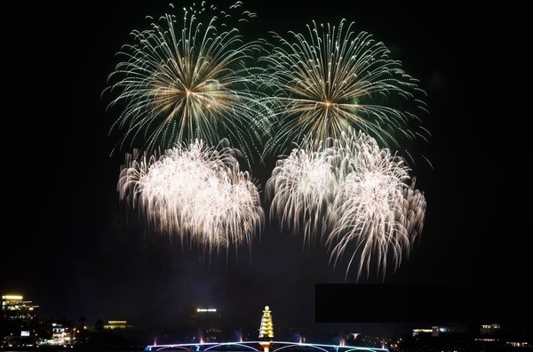 Chương trình bắn pháo hoa mừng lễ hội do thành phố Việt Trì (tỉnh Phú Thọ) tổ chức tại cầu đi bộ, hồ Công viên Văn Lang, kéo dài 15 phút, kết hợp giữa pháo hoa tầm thấp và tầm cao