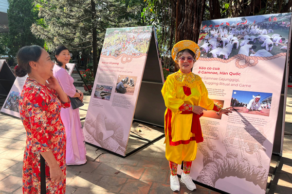 Triển lãm về di sản văn hóa kéo co có tên gọi “Chung một sợi dây”, trưng bày những bài viết và hình ảnh giới thiệu giá trị, ý nghĩa và hình thức nghi lễ và trò chơi kéo co tại 4 nước: Campuchia, Philippines, Hàn Quốc và Việt Nam.