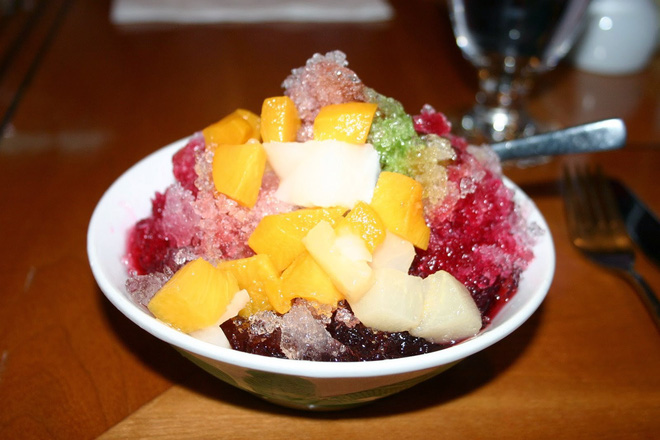 Món chè này mới nhìn qua lại tưởng là tô đá bào Việt Nam quen thuộc. Tuy nhiên món ăn này lại là món tráng miệng đường phố của Singapore. Thành phần chính của món này là một lớp đá bào nhuyễn mát lạnh mang nhiều hương vị siro hấp dẫn như dâu, bạc hà, socola… Bên trên topping ngập tràn với nhiều món ngọt béo, nào là đậu đỏ, thạch giòn, thạch dừa, ngô… Chưa dừng lại ở đó, vị ngọt còn được tiếp thêm bởi lớp sữa đặc thơm thơm.