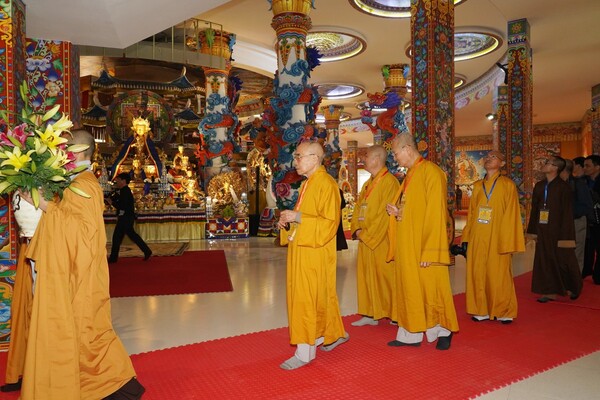 Kiến trúc khuôn viên ngoài bảo tháp rất đặc sắc với năm vòng tròn màu sắc vàng, trắng, đỏ, xanh lục, xanh dương từ trong ra ngoài tượng trưng cho các đại địa, thủy, hỏa, phong và không. Kiến trúc bên trong đại bảo tháp là nơi an vị trưng bày những tôn tượng điêu khắc, bích họa linh thiêng của nghệ thuật Phật giáo Kim Cương thừa.