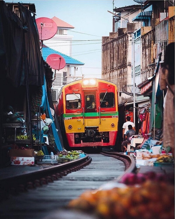 Chợ Maeklong nằm trên đường tàu thuộc tỉnh Samut Songkhram, cách thủ đô Bangkok khoảng 58km và được mệnh danh là khu chợ độc nhất vô nhị ở xứ sở các ngôi chùa. Có chiều dài hơn 100m dọc theo đường tàu, khu chợ đến nay được khoảng hơn trăm tuổi và vẫn hoạt động nhộn nhịp mỗi ngày, mọi người gọi nơi này là Siang Tai, nghĩa là cuộc sống mạo hiểm. Các du khách thì gọi khu chợ với cái tên dân dã hơn – chợ đường tàu.