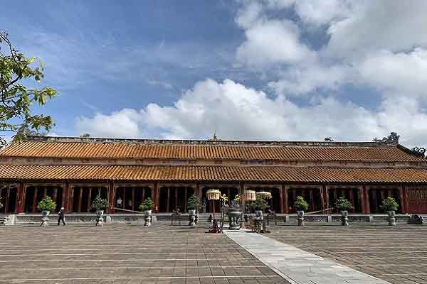 Sau khi tham quan hết các kiến trúc bên trái cùng chính giữa, du khách sẽ tiến về phía bên phải Đại Nội Huế để thăm viếng các công trình cuối cùng trước khi ra về.