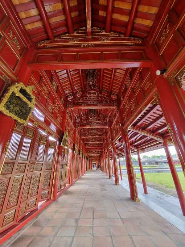 Một trong những hành lang dài nối liền các kiến trúc trong Đại Nội Huế.