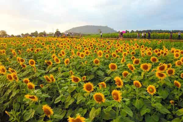 Một bên là cánh đồng hướng dương bạt ngàn trải dài đến vô tận, một bên là dãy núi hùng vĩ, bên cạnh dòng sông Sao hiền hòa, mênh mông. Tất cả tạo nên một bức tranh tuyệt đẹp, làm say đắm lòng biết bao du khách khi đến tham quan.