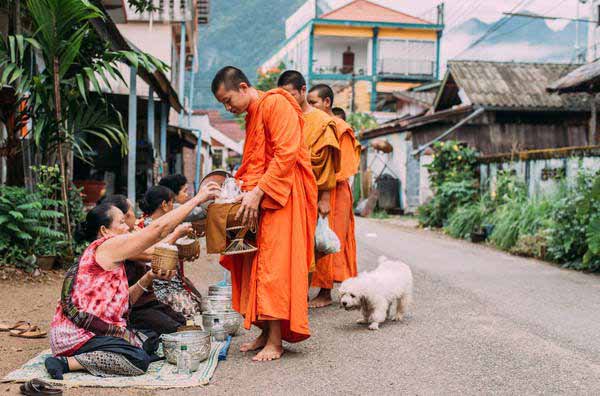 Du khách đến Lào thường rất ấn tượng bởi hình ảnh khất thực của các nhà sư – Ảnh: Internet