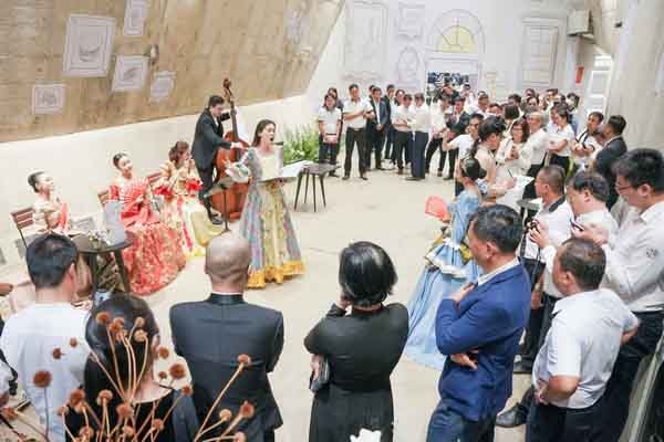 Du khách thích thú theo dõi màn hùng biện của không gian Café Châu Âu thời kỳ Phục hưng được tái lập tại Bảo tàng Thế giới Cà phê