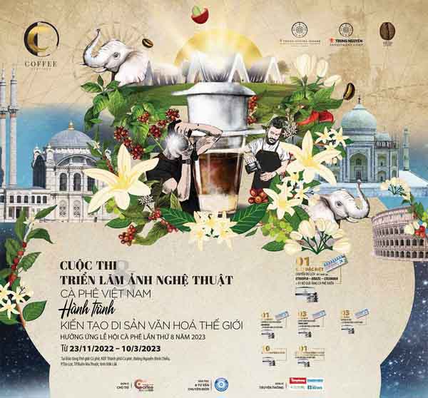 Cuộc thi và triển lãm ảnh nghệ thuật “Cà phê Việt Nam – Hành trình kiến tạo di sản văn hoá thế giới” do Bảo tàng Thế giới Cà phê đồng hành tổ chức đã được phát động nhằm hưởng ứng Lễ hội cà phê Buôn Ma Thuột lần thứ 8 năm 2023.