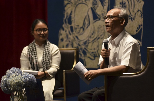 Nhà nghiên cứu Huỳnh Ngọc Trảng (bìa phải) trong buổi Khảy nhịp tang tình