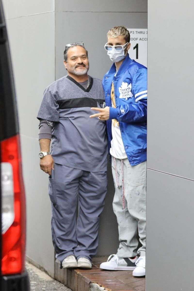 Chàng trai Justin Bieber vô cùng cá tính và dễ gần trong set đồ cực ngầu gồm áo thun, áo khoác bomber, quần thể thao và sneaker. Nam ca sĩ luôn đeo khẩu trang, mắt kính khi xuống phố.
