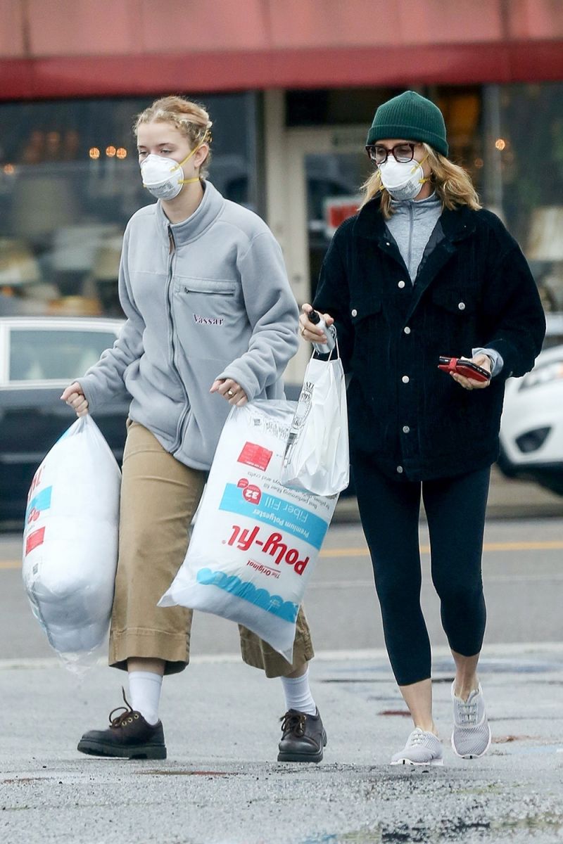 Nữ diễn viên Felicity Huffman cùng con gái xuống phố mua sắm mùa đại dịch. Cô chọn khẩu trang chống độc, đeo mắt kính, đội nón len để bảo vệ sức khỏe.