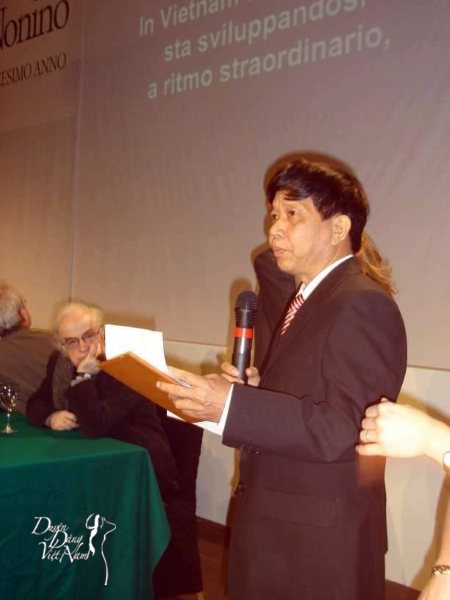 Nhà văn Nguyễn Huy Thiệp phát biểu khi nhận giải thưởng văn học Premio Nonino tại Ý