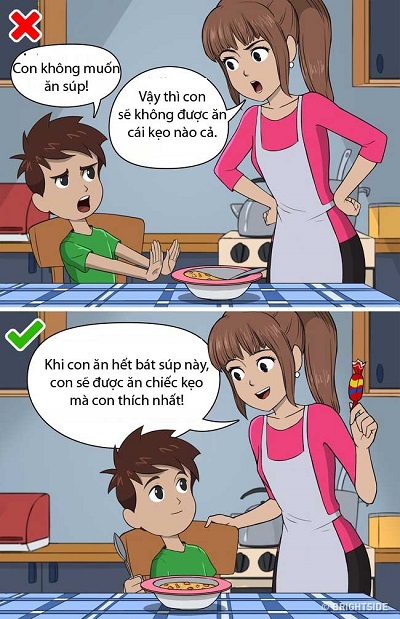 Hầu hết bọn trẻ đều hợp tác tốt khi được chào mời bằng những trao đổi hấp dẫn.
