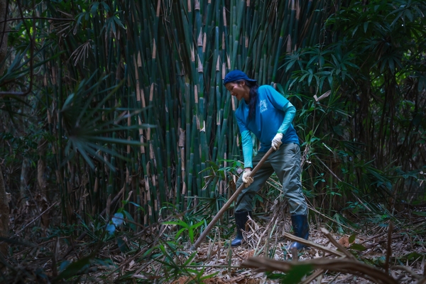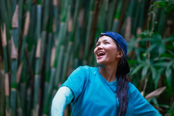 Cô liên tục pha trò, kể chuyện giúp xua tan đi cảm giác mệt mỏi khi di chuyển trong rừng.