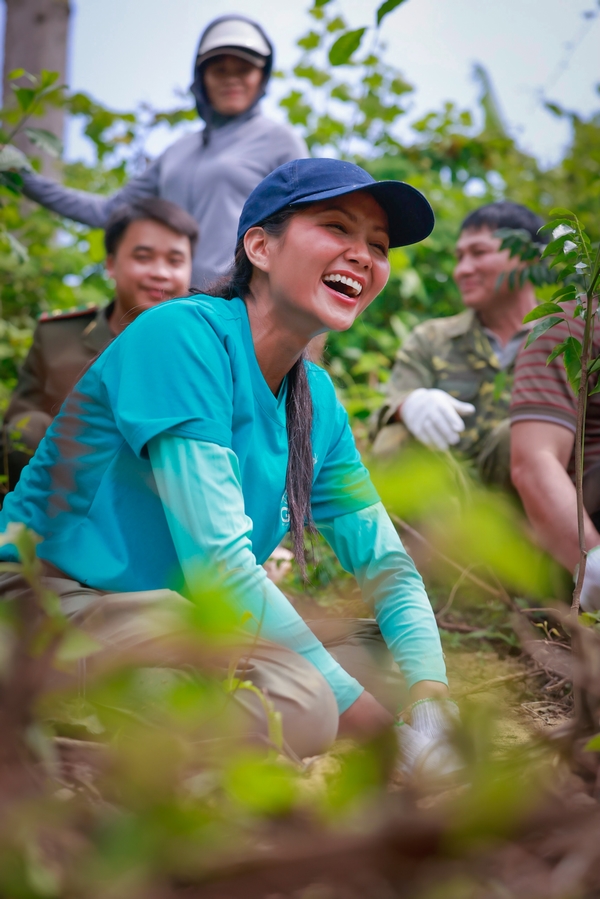 Khoảnh khắc đáng yêu của H’Hen Niê khi trồng cây trong rừng