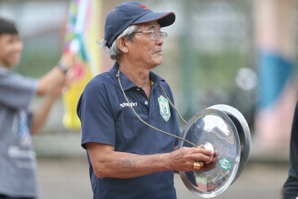 Cổ động viên lớn tuổi cổ vũ sân chơi U.21 (Ảnh: Khả Hòa)